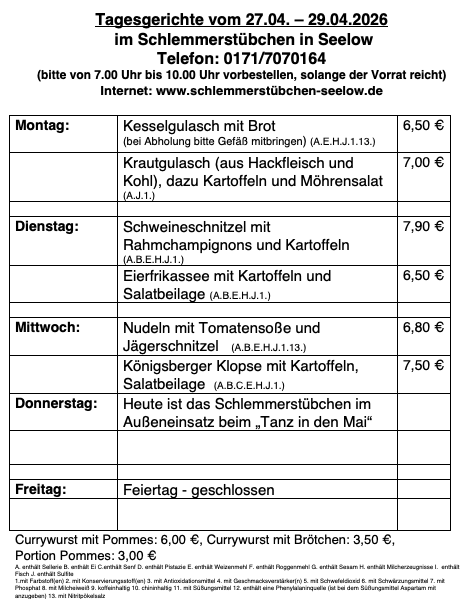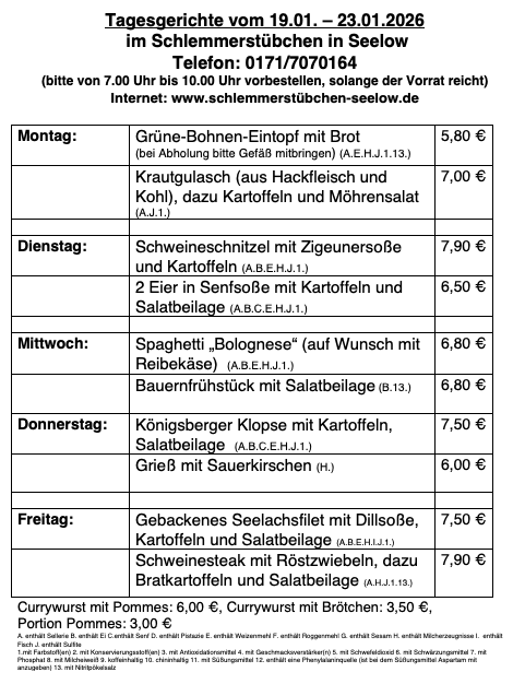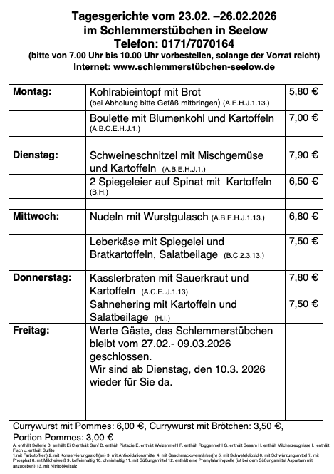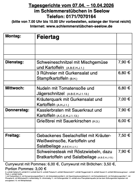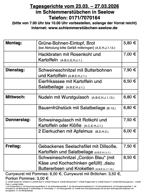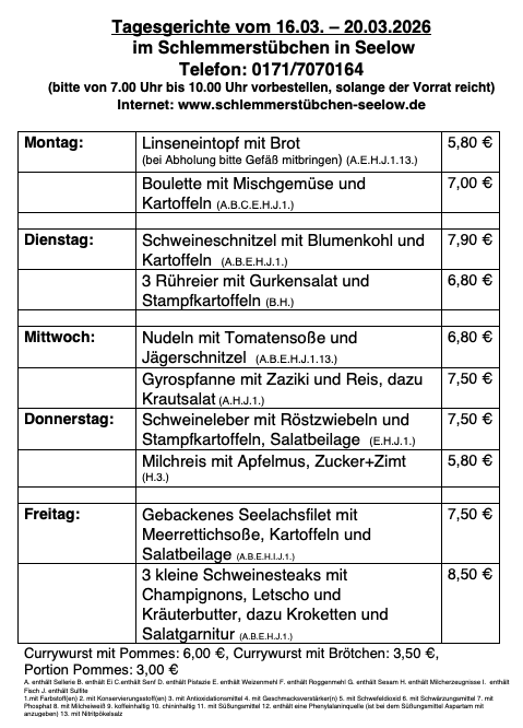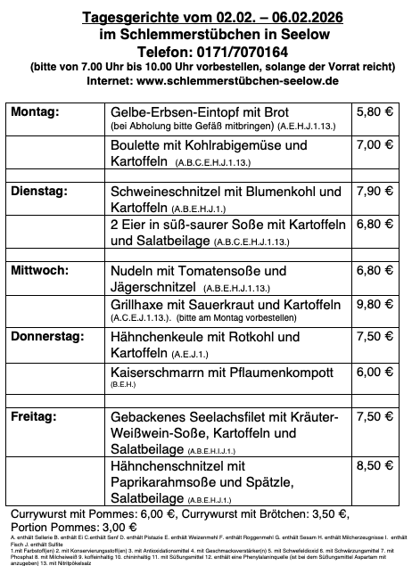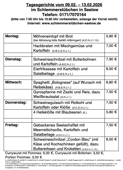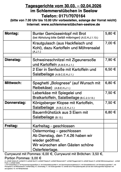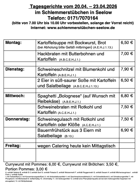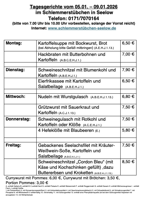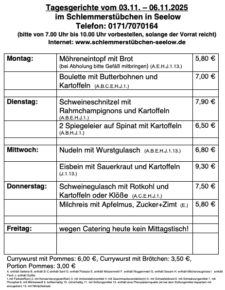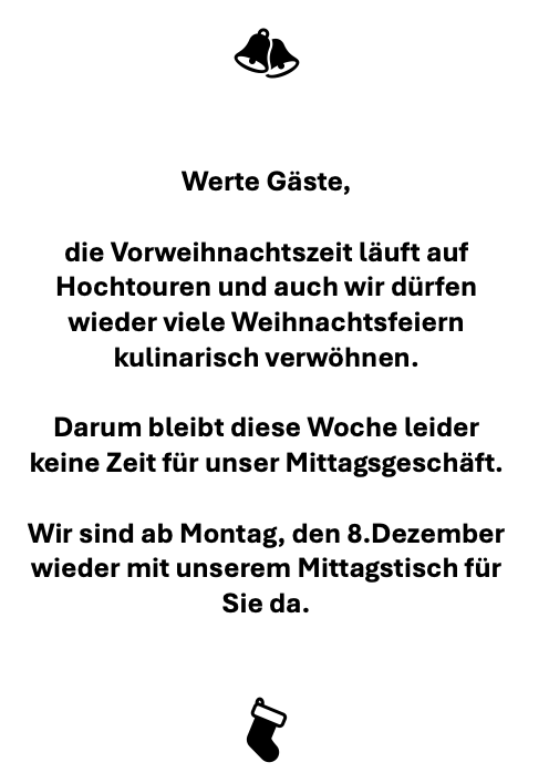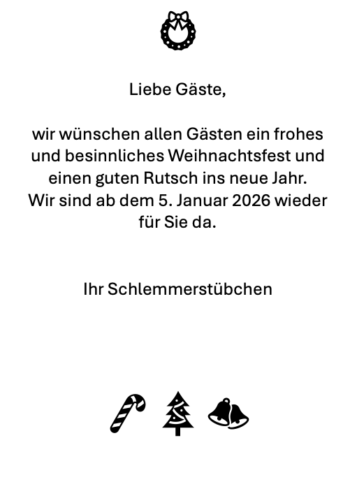 Alle Gerichte auch außer Haus: zzgl. Verpackung 0,50 €